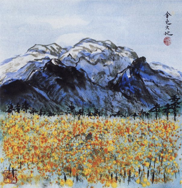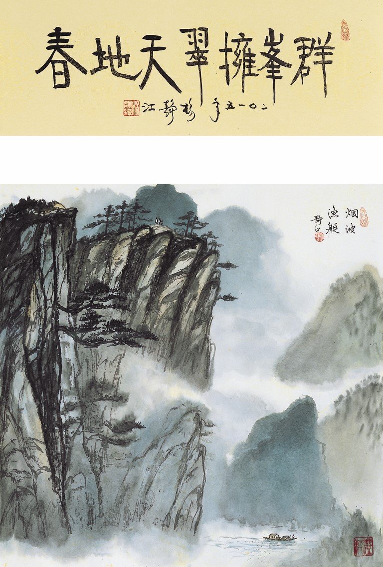 Y022 楊靜江---群峰擁翠天地春 書畫 H60xW79cm