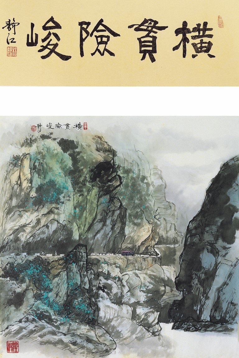Y023 楊靜江---橫貫險峻 書畫 H60xW79cm