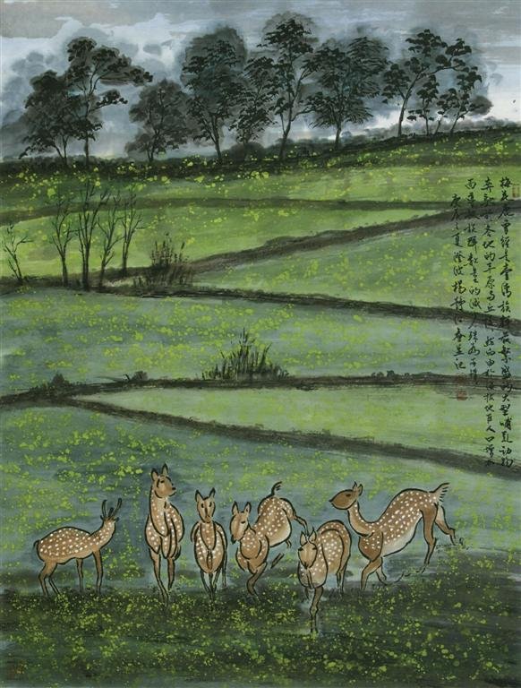 I005 楊靜江---保育動物梅花鹿 160x84cm