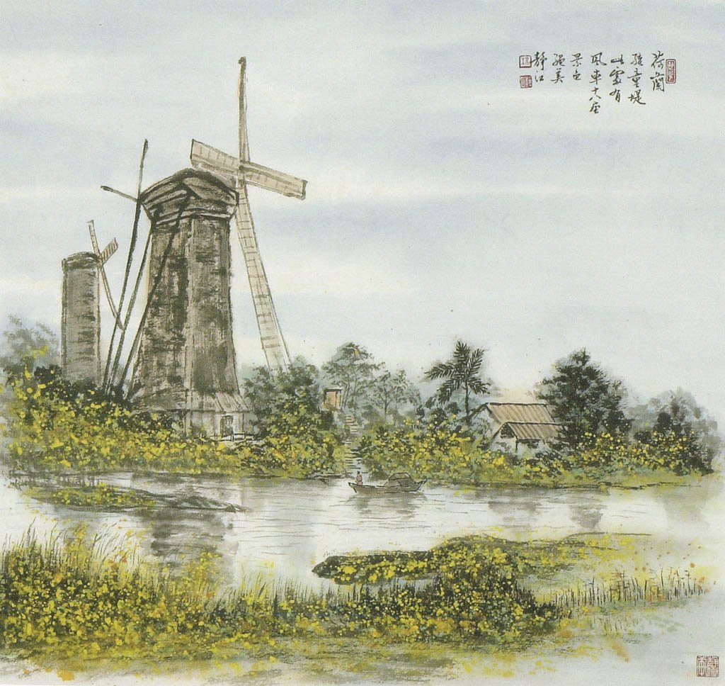 I017 楊靜江---荷蘭孩童堤 70x75cm 水墨